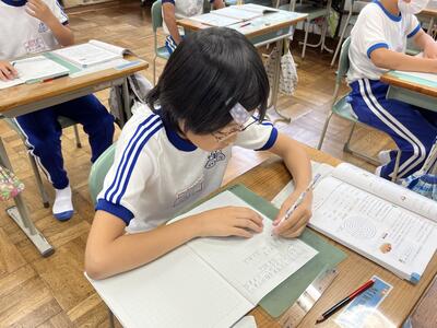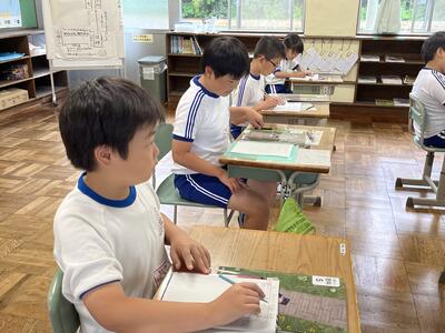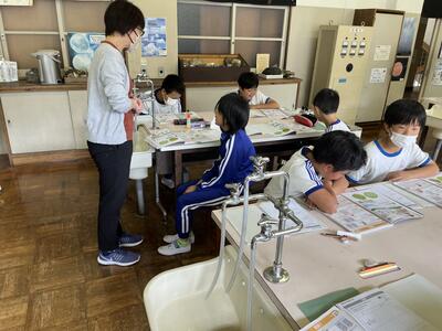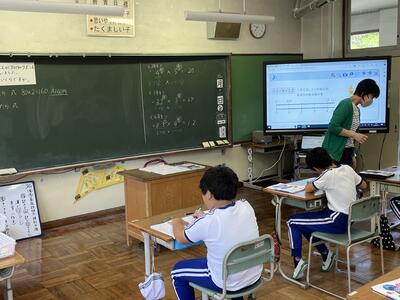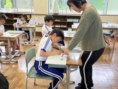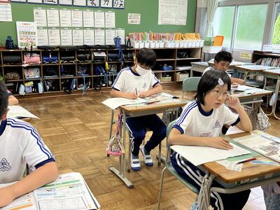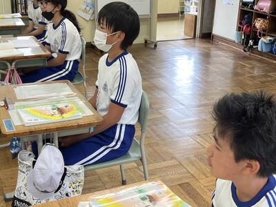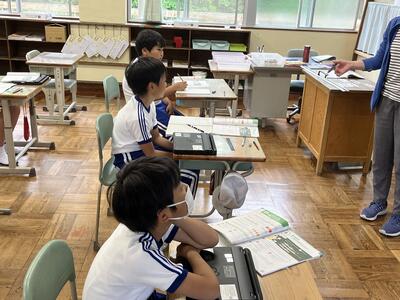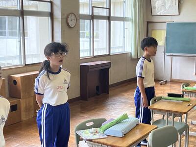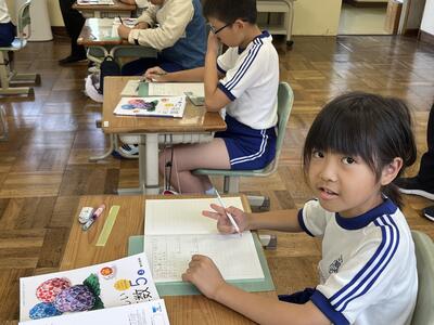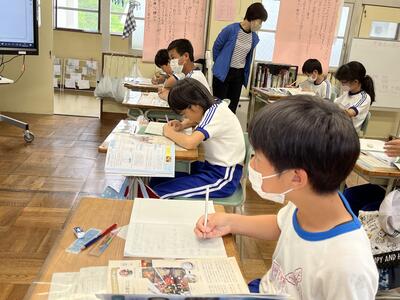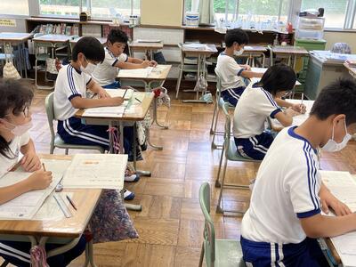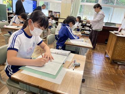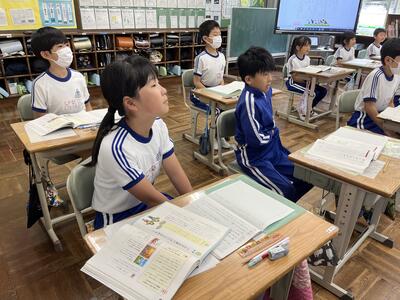 6年生は音楽で「おぼろ月夜」を歌いました。「菜の花畑に 入り日薄れ見渡す山の端 霞深し」の歌詞で有名な春の歌です。残念ながら今日は初夏の陽気でしたが、元気に歌う6年生の姿は素晴らしかったです。他の学年の児童たちもそれぞれにしっかりと学習課題に取り組むことができました。