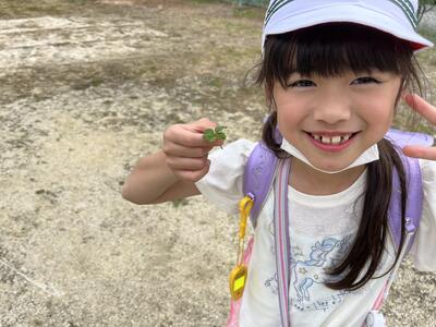2年生女子が四つ葉のクローバーを見つけました。彼女と綴小に幸運が訪れますように!