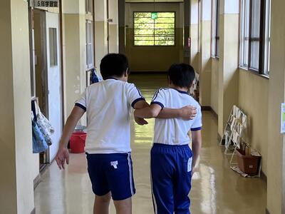 登校時、綴小学校にあがる階段は大人でも辛いのですが、その階段を1年生も上って登校します。今日はその階段で素敵な光景を見かけました。2年生が手をつなぎ、1年生を励ましながら登っていたのです。綴小の子どものやさしさを改めて知ることができました。朝から今日の天気のように清々しい気持ちになりました。