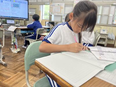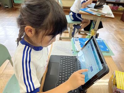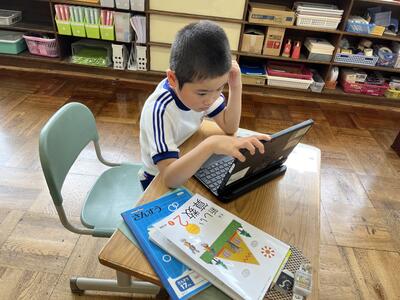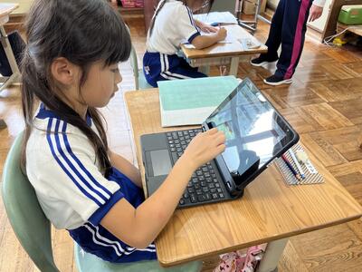2年生はタブレット内のドリルパークで問題演習です。自分のペースで楽しく学習していました。