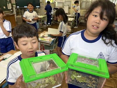 3年生は成虫になったモンシロチョウを逃がしてあげました。「元気でね!」