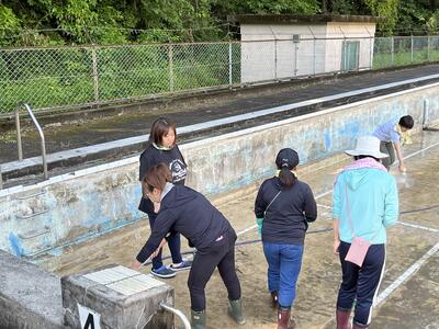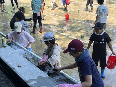 2024年5月25日 10時30分本日、PTA奉仕作業が行われました。プールの清掃と校舎内の窓拭きを行っていただきました。プールも校舎内の窓もたいへんきれいになりました。保護者の皆様、本当に朝早くから、そして日差しが強い中、ありがとうございました。児童の皆さんもお疲れ様でした。