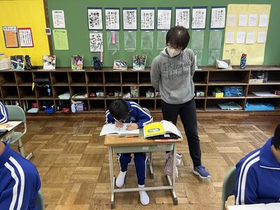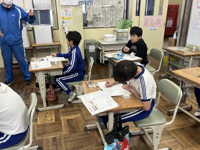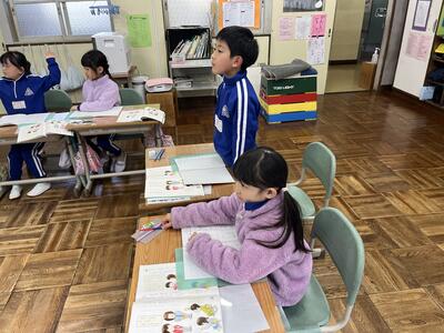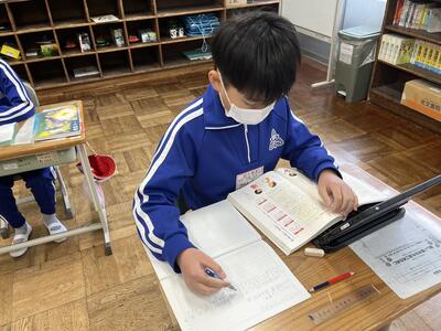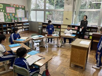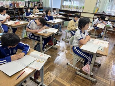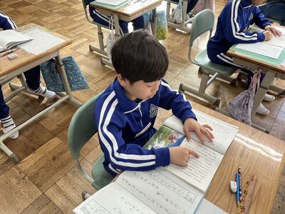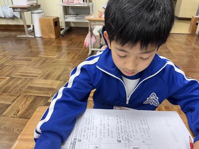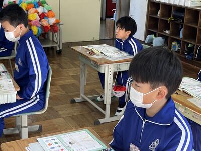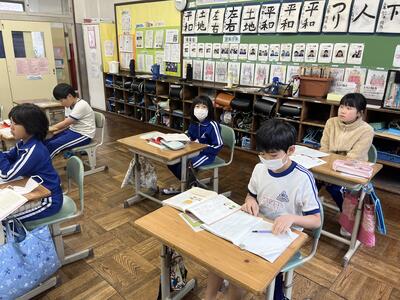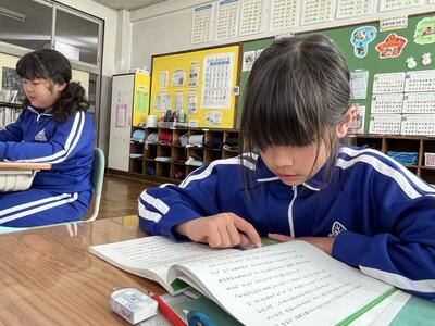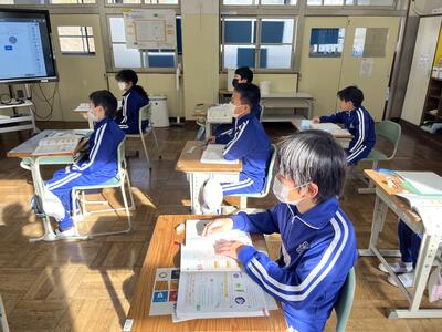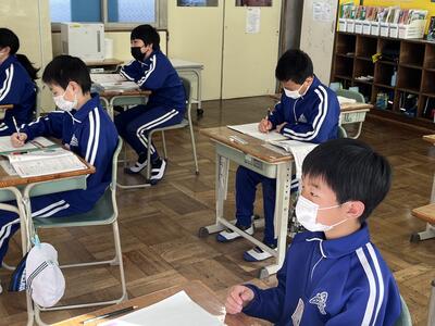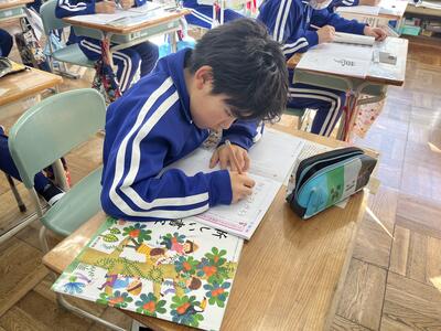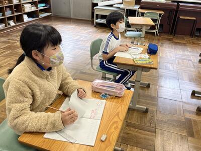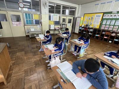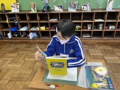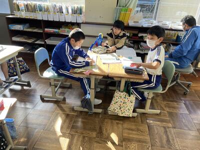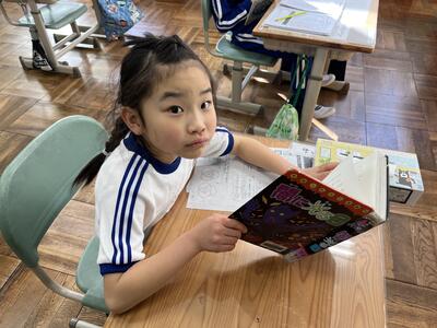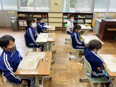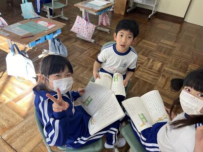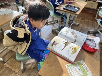 2月も最後の日になりました。子どもたちは朝から頑張っています。今日の朝自習は読書。それぞれの児童が自分で選んだ本を読みました。1年生は絵本をじっくり読みました。3・4年生は恐竜など自分の興味のある本を読んでいました。