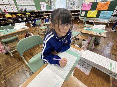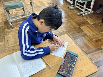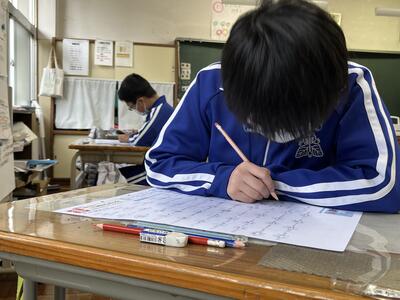 5・6年生は真剣に硬筆に取り組みました。一文字一文字に集中。心を込めて書きました。
