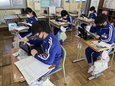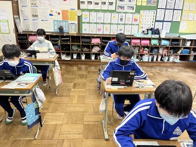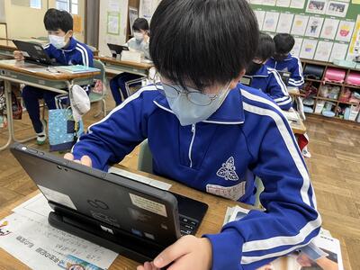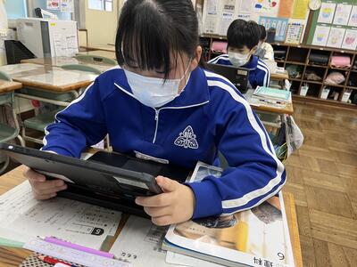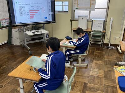 6年生はタブレット端末を使って、理科の問題に取り組みました。全員、真剣です。