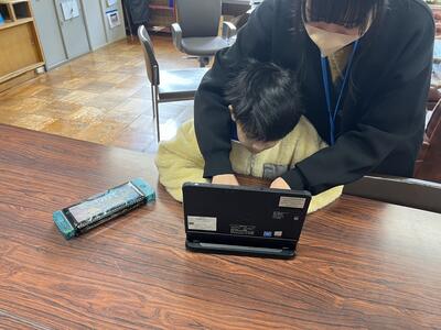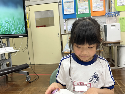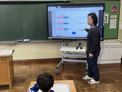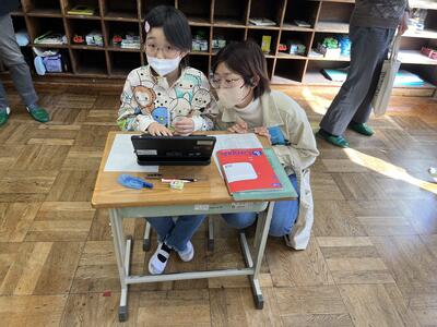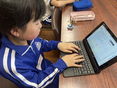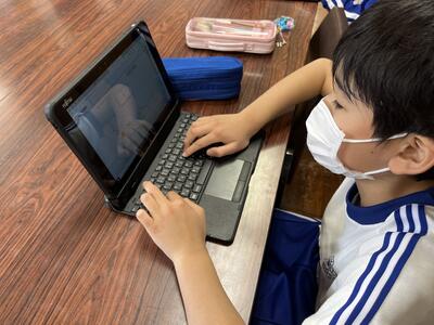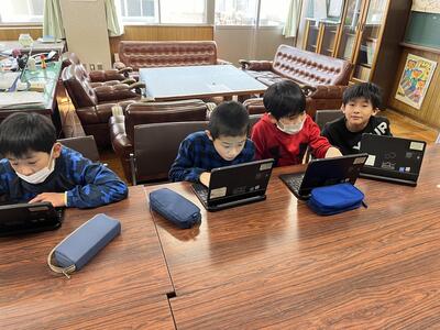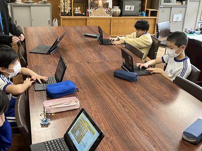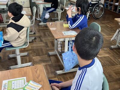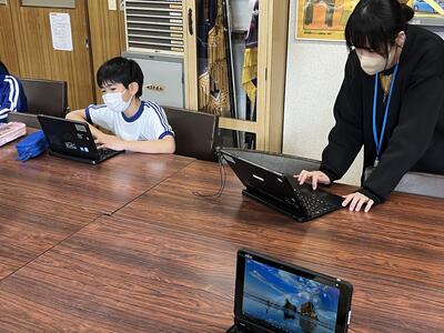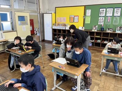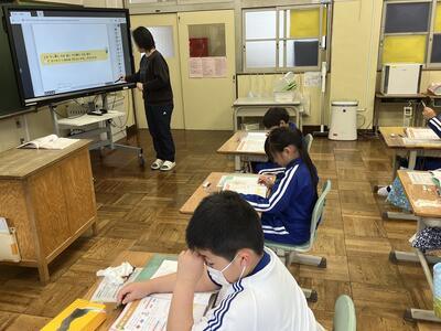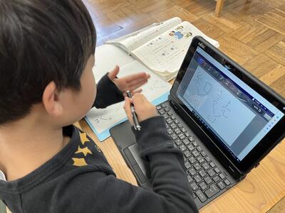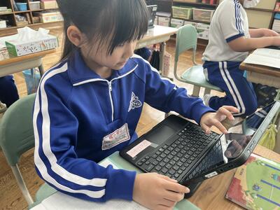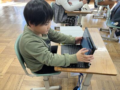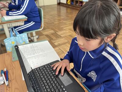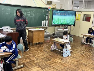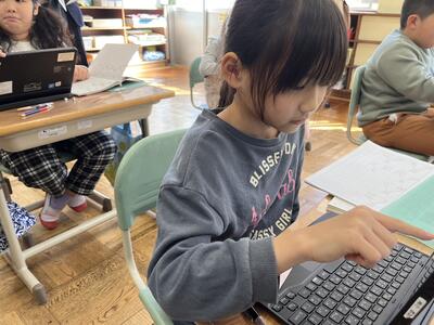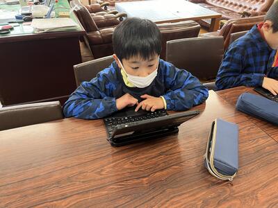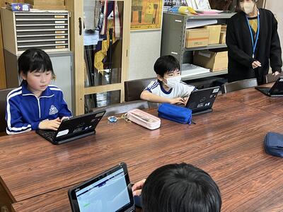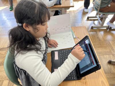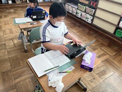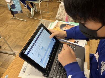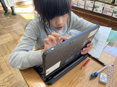 3年生はタブレット端末でタイピングを行いました。ICT支援員によると「ホームポジション」が大事なのだそうです。私は自己流なので人差し指でキーボードを押すことが多いのですが、ホームポジションを理解した3年生は上手に全部の指を使ってタイピングしていました。