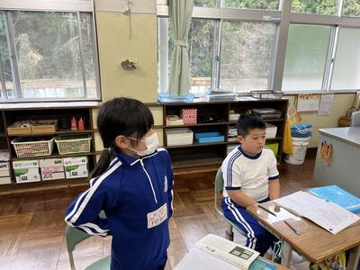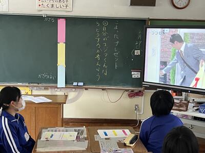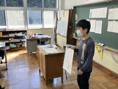 5・6年生は昨日の午後の道徳で友情について考えました。気持ち柱という心の中のものさしを使っての授業でした。グループ内の発表も全体発表も堂々とできました。6年生の卒業しても、別の学校に行ってもピンチの時には助け合うという言葉に感動し、涙が出そうになりました。