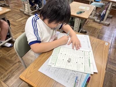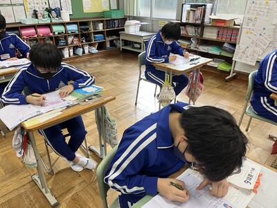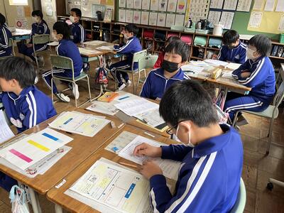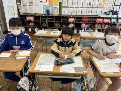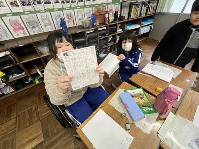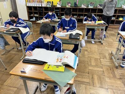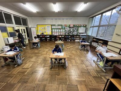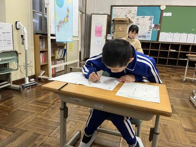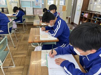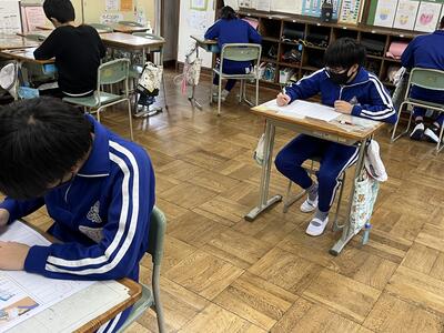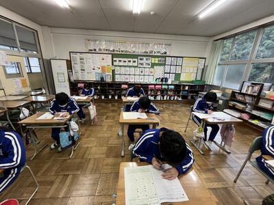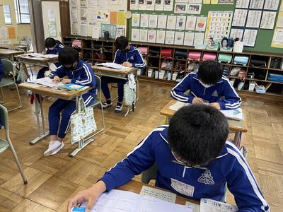 今日は1年生から6年生まで学力テストを受験しました。真剣に問題文を読み、一問一問、丁寧に回答しました。全校生がたいへんよく頑張りました。お疲れ様でした。