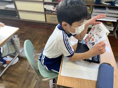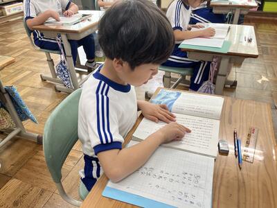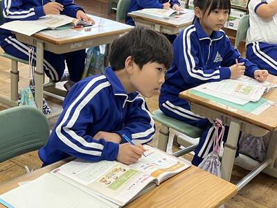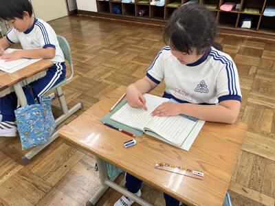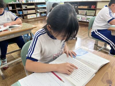 2年生は音読練習です。「スーホの白い馬」を一生懸命に読みました。