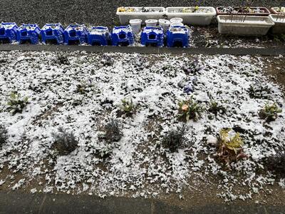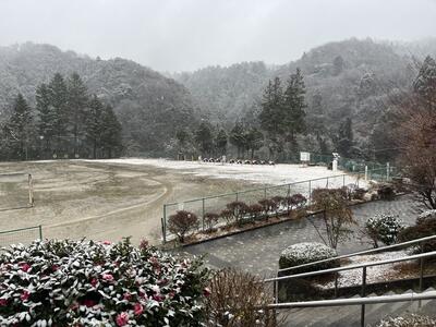 今日は綴町も雪が降っています。校庭にも校長室前の花壇にも、うっすらと雪が積もりました。