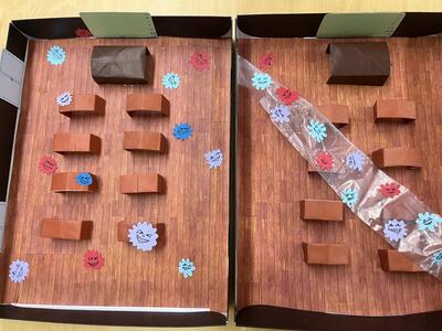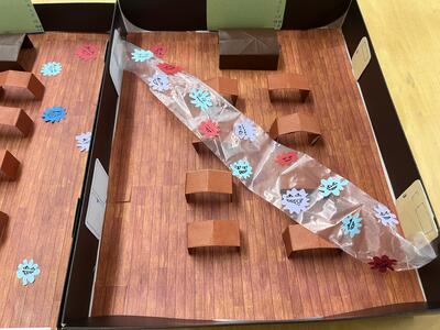 また保健室の中には、換気の大切さを知るためのモデルがあります。換気をするとウィルスが教室の外に出て行くから、感染症の予防になりますね。