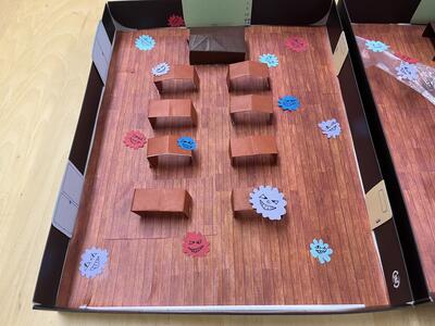 ウィルスが教室のあちこちに。たいへんだぁ。
