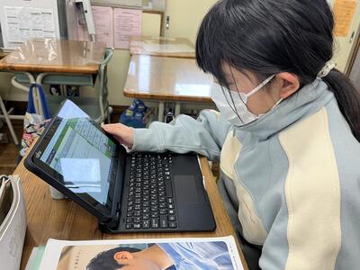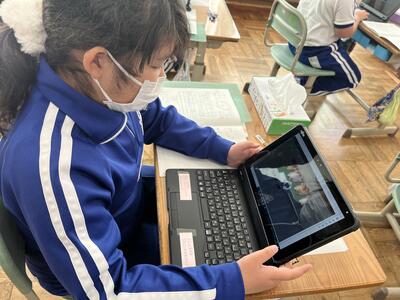 昨日、いわきサンシャインマラソンに出場した3年生の男の子に感想を教えてもらいました。彼はタブレット端末に文字を入力して教えてくれました。マラソンだけでなく、ICT機器の活用も頑張っています。
