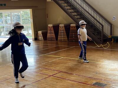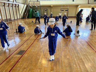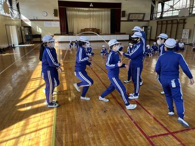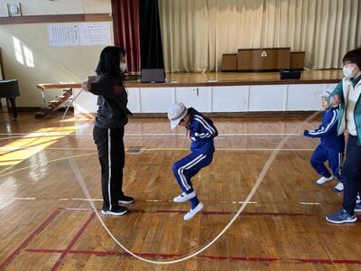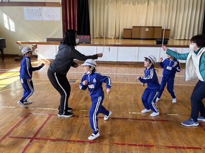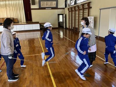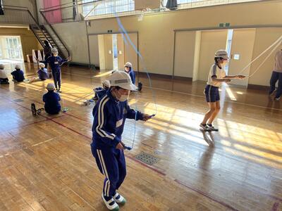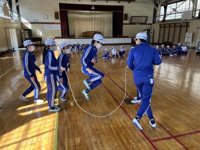次は長縄とびです。それぞれの学年で協力して跳びました。