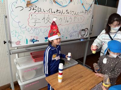 1年生は綴保育所の皆さんと交流会を行いました。1年生も綴保育所の皆さんもみんな笑顔になる温かい会でした。綴保育所の皆さん、また綴小学校においでください。