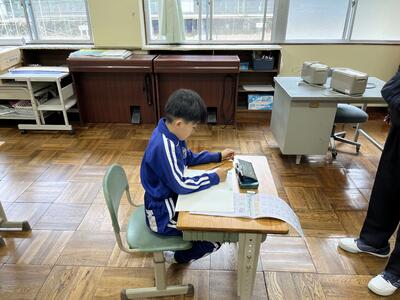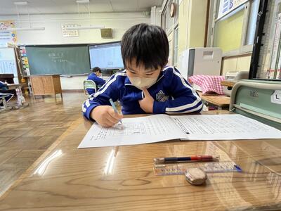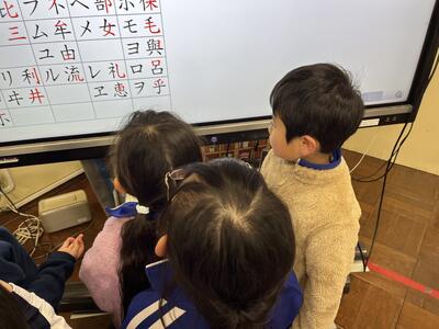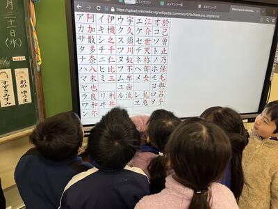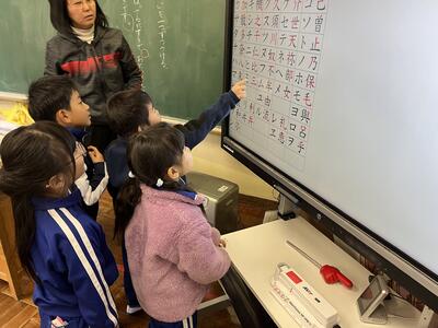 1年生はカタカナの学習を行っています。今日の学習では漢字からカタカナが出来上がったことを学びました。児童たちはカタカナのもとになった漢字を見て、驚いていました。