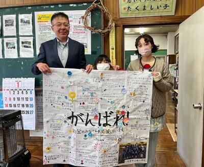 いわき市社会福祉協議会のホームページに綴小の応援メッセージの写真が掲載されていました。