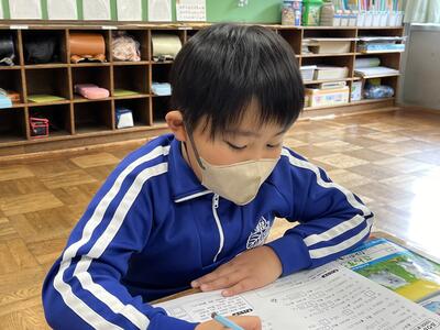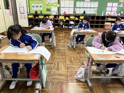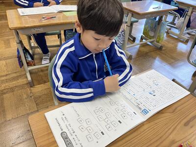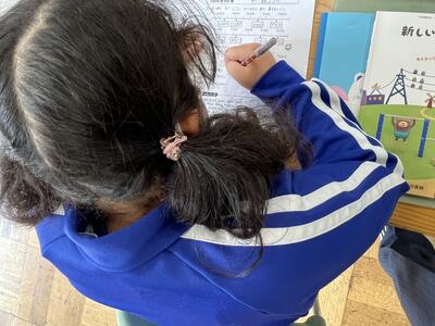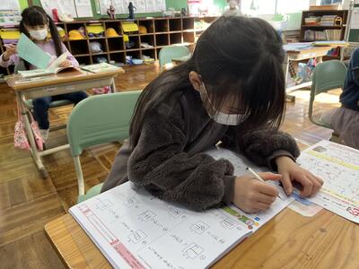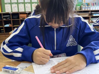 2年生は算数の門体をたくさん解きました。みんな集中して問題に取り組みました。⚪をいっぱいつけてもらいました。