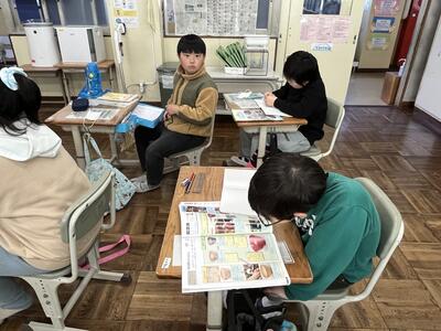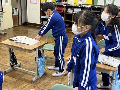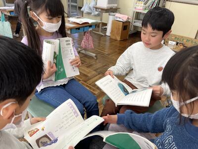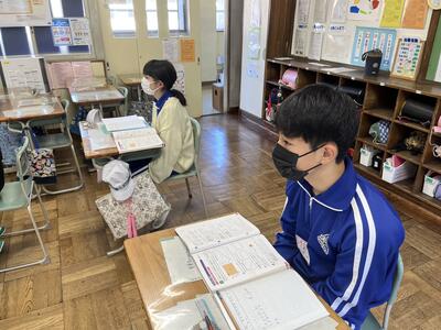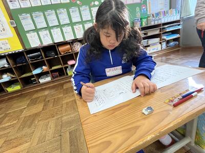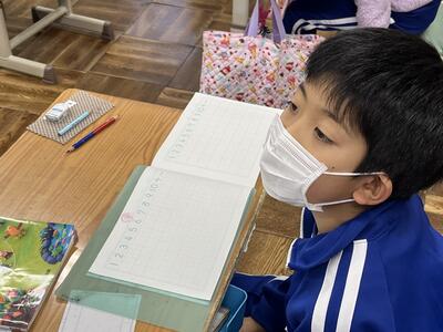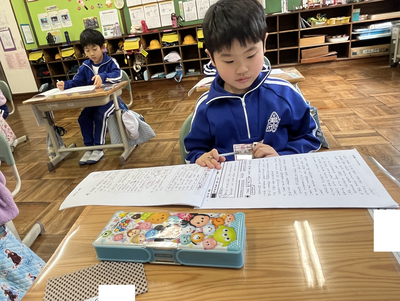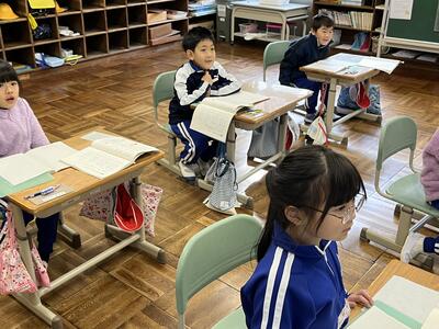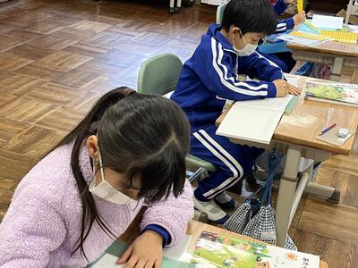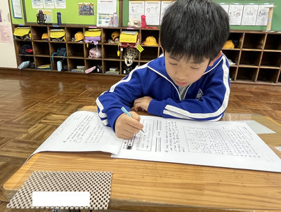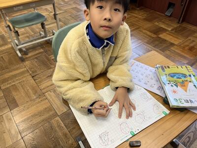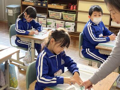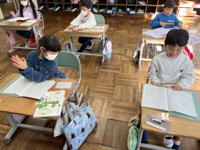 1年生は漢字の練習をしてから、グループになって、「たぬきの糸ぐるま」の音読練習をしました。仲良く楽しく活動できました。