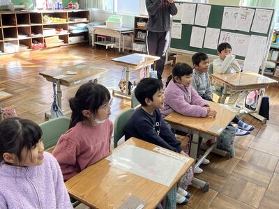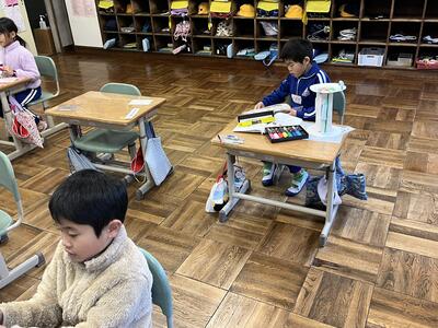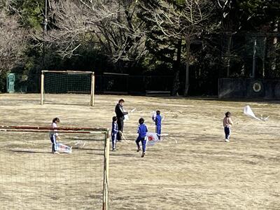 授業でも頭と体を鍛えました。1年生は凧あげを頑張りました。6年生は公民館の発表に向けての仕上げを行いました。
