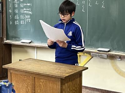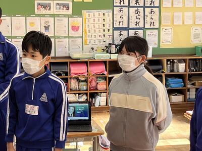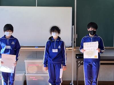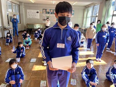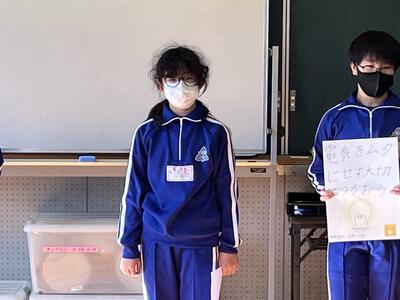 1月の最終週がスタートしました。今日は大休憩の時間に児童集会が行われました。まず校内書き初め会で入賞した児童の表彰を行いました。その後、環境委員の児童から限りある資源を無駄にしないようにという呼びかけがありました。電気や水についてのクイズもあり、楽しい時間を過ごしました。