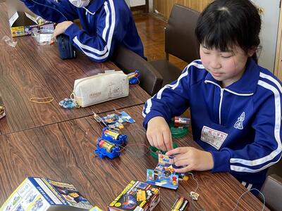 3年生は理科で、おもちゃ作りをしました。磁石の力と電気の力を使います。設計図を見ながら、せっせと作りました。