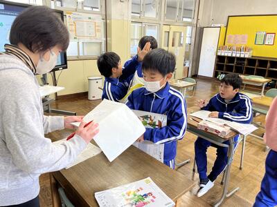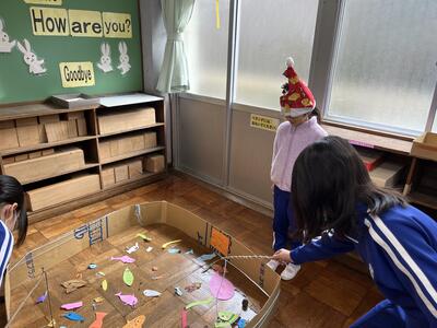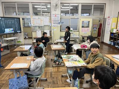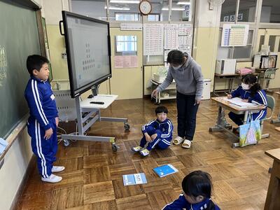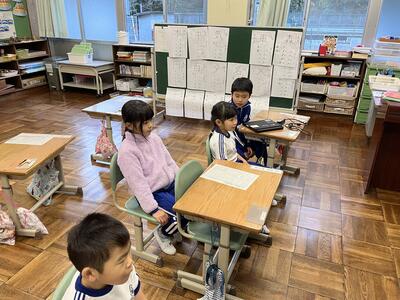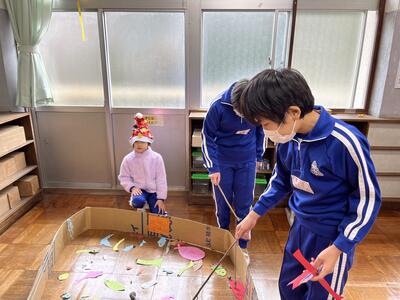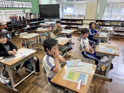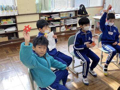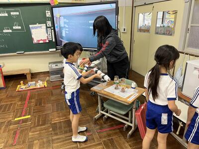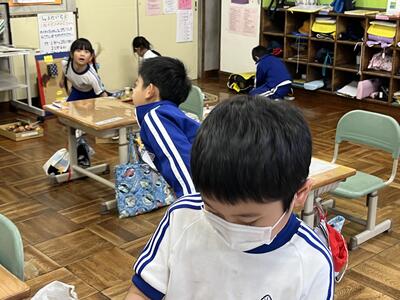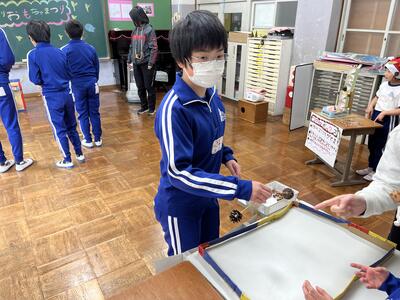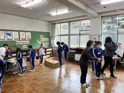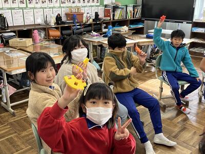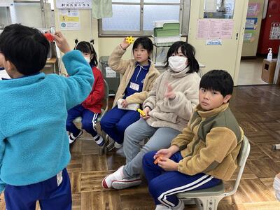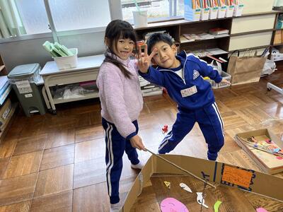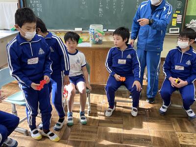 4時間目に1年生が「手づくりおもちゃまつり」を開きました。お客様として2年生と6年生が参加し、手づくりのおもちゃで遊びました。会場では笑い声が絶えませんでした。1年生、素晴らしいひとときをありがとうございました。