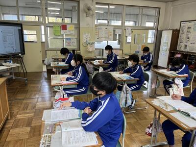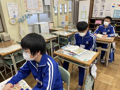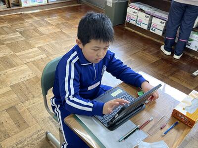 6年生は保健体育の授業で、調べ学習を行っています。表情が真剣です。