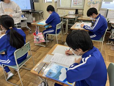 保健の先生から心の健康の話がありました。ストレスと上手に付き合う方法とSOSの出し方について学びました。
