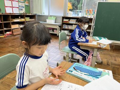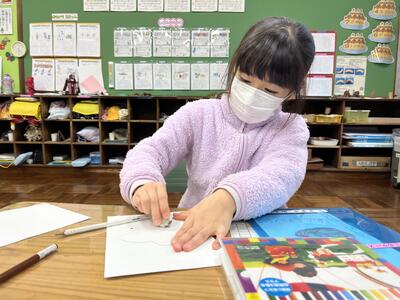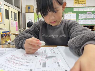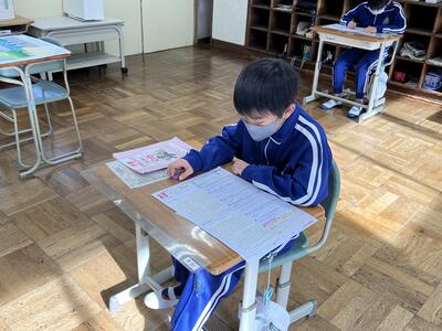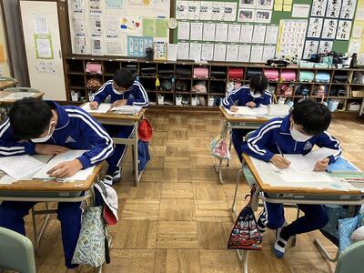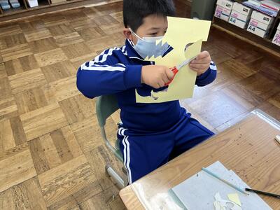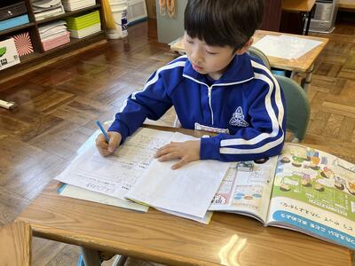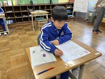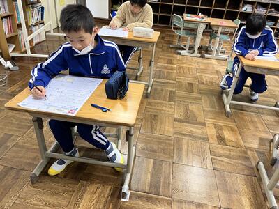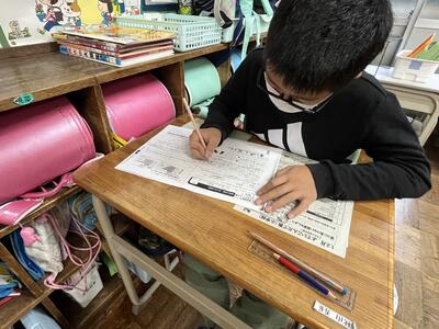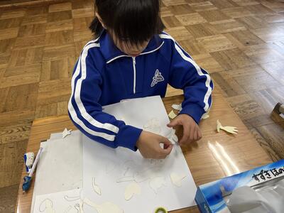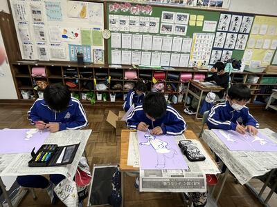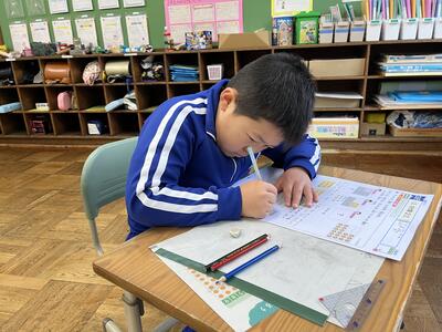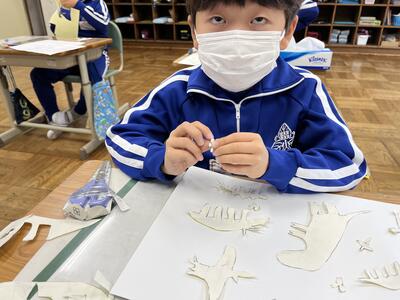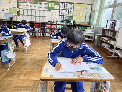 2年生は紙版画を楽しみました。はさみで切って、配置を考えて素敵な作品を作っています。完成するのが待ち遠しいです。2年生は算数のテストも頑張りました。