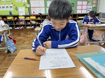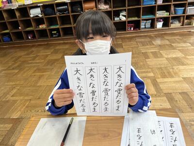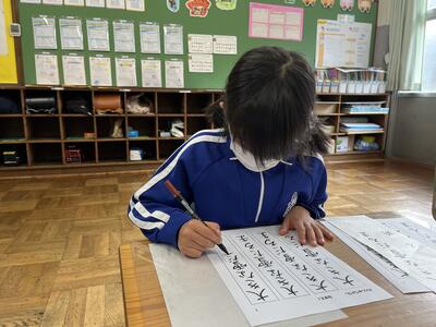 今日はかきぞめ練習会を実施しました。内郷書道会の皆さんがとてもやさしく上手に書くポイントを教えてくださいました。上手になったねと褒めていただき、子どもたちは満面の笑みでした。内郷書道会の皆さん、ありがとうございました。かきぞめ練習会は1月10日にも実施します。