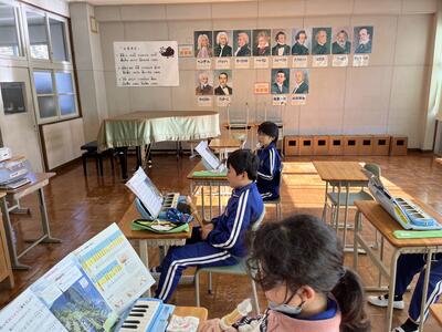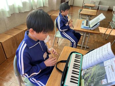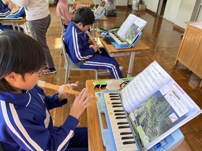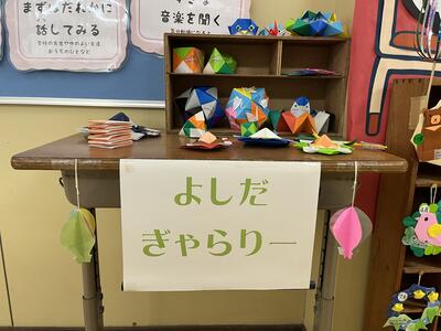 5年生はリコーダーで風とケーナのロマンスを奏でました。アンデスを想像させるメロディで聞いていると心が癒やされます。癒やされるといえば、保健室前の「よしだぎゃらりー」の作品です。色とりどりの折り紙で作られた作品が飾られ、見ていると元気がわいてくる気がします。ご来校の際には、ぜひご覧ください。