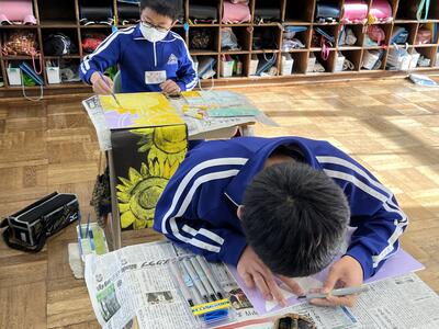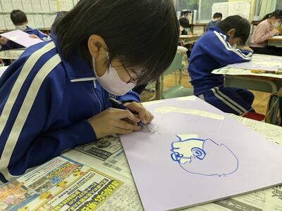 5年生は図工で版画に取り組んでいます。丁寧に彫り進める姿が素晴らしかったです。当然作品も素晴らしいものになりそうです。今回のテーマは人物。できあがりを楽しみにしています。