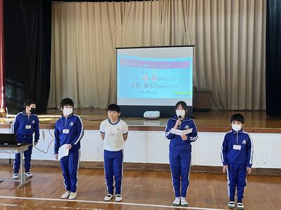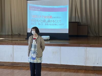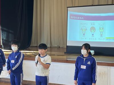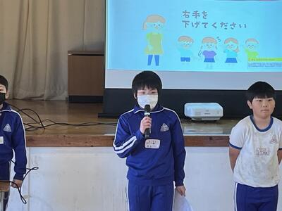 今日は大休憩の時間に児童集会を行いました。今日は保健員会の発表でした。全校生にコグトレの方法を伝え、全校生で実施しました。たいへん上手に運営することができました。