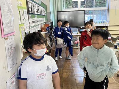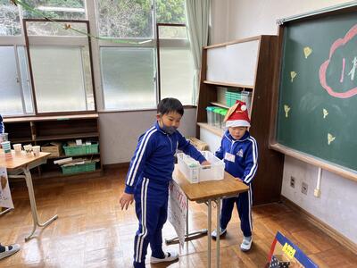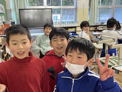 明日から冬休みです。冬休み中のクリスマスやお正月を子どもたちは楽しみにしているようです。今日の午後、子どもたちの写真を撮ると輝く笑顔でした。「冬休みが楽しみ」と答える児童がたくさんいました。