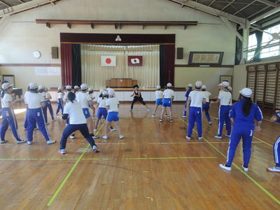 高学年によるリズムダンスの様子です。心地よい汗をかくことができました。
