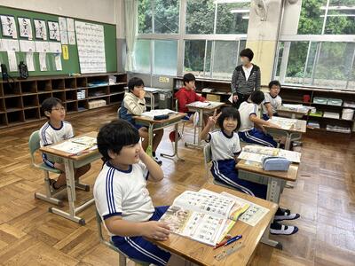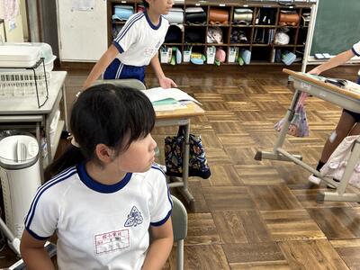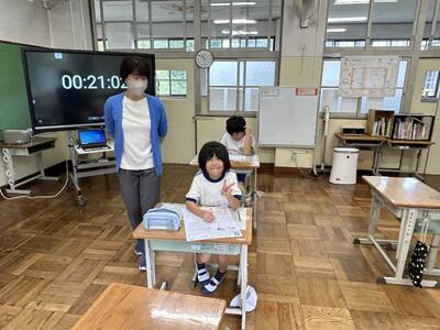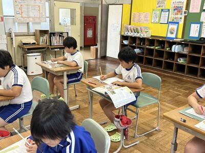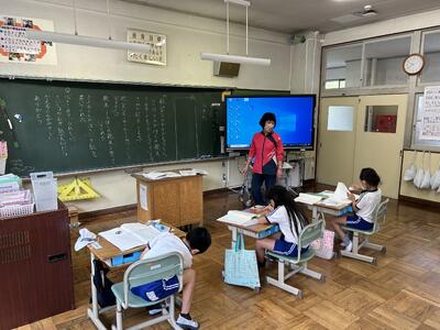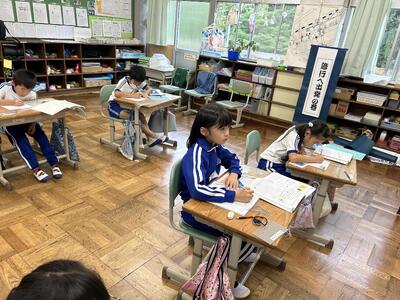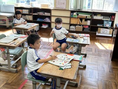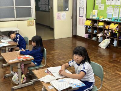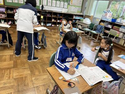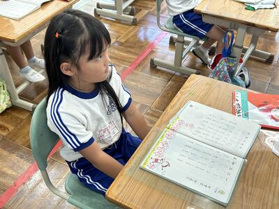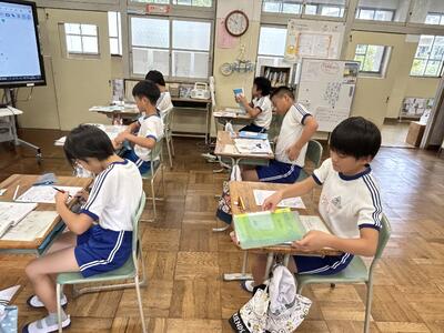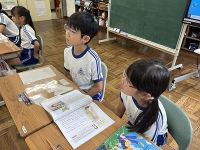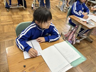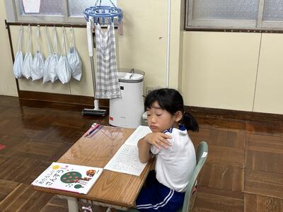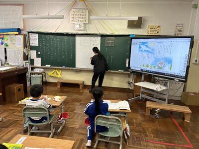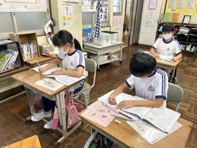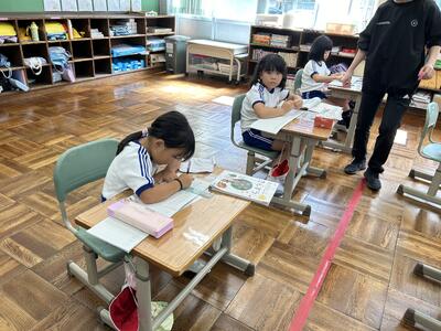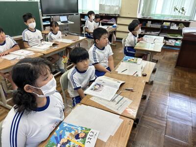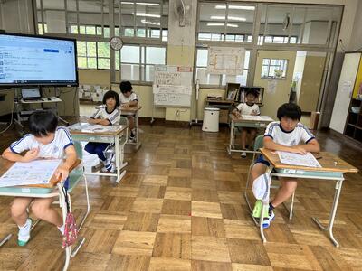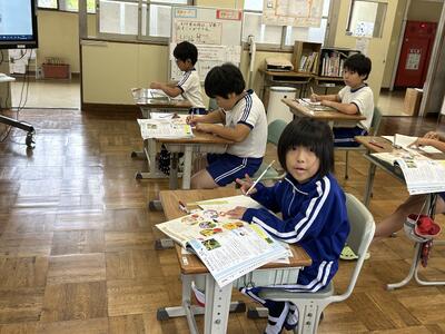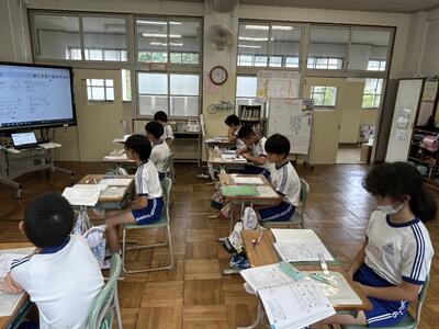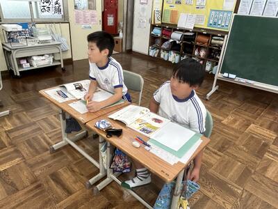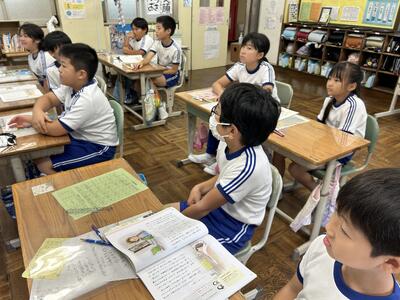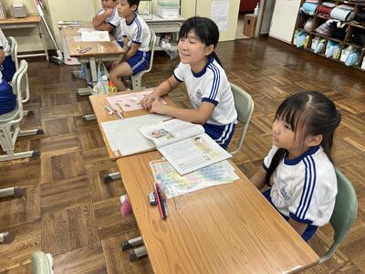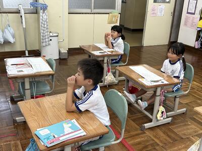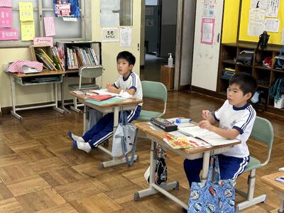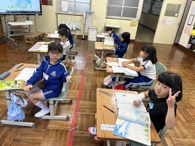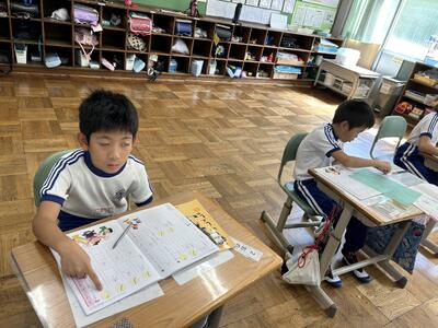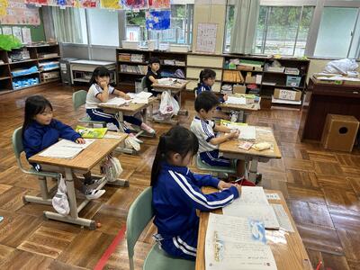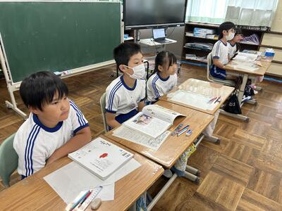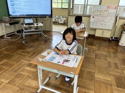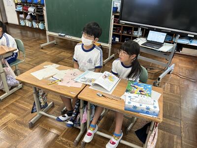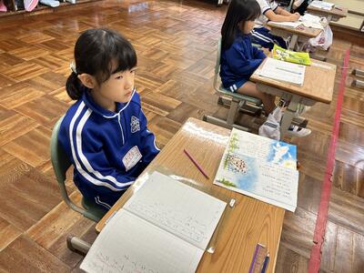 1年生も2年生もしっかりと学習ができました。1年生は国語で「くじらぐも」を学習しています。今日は雨降りで空がきれいに見えなくて残念でした。