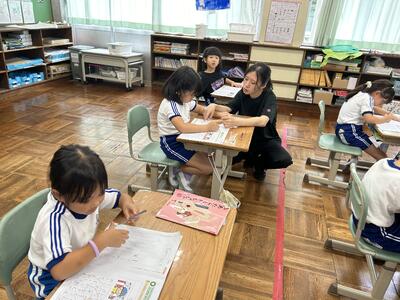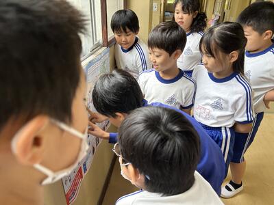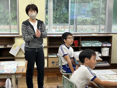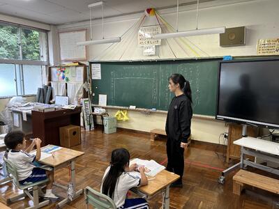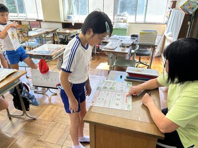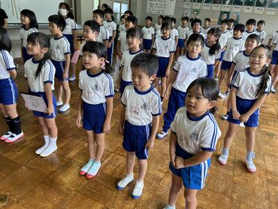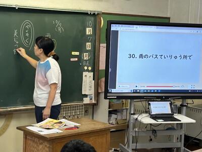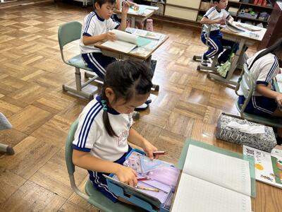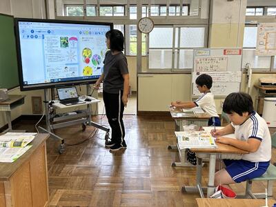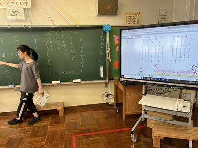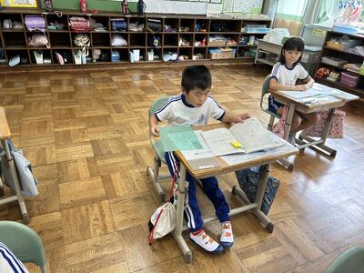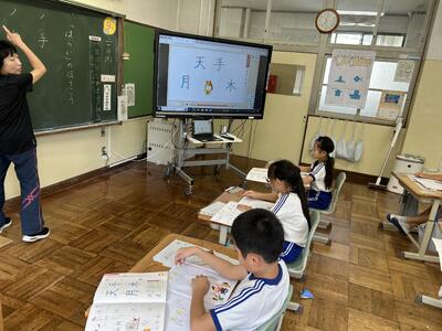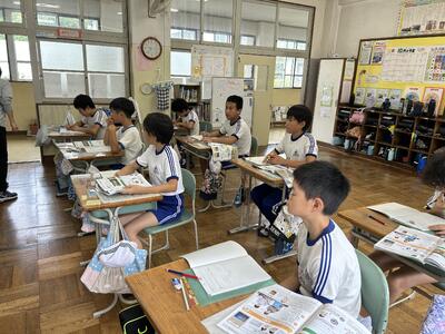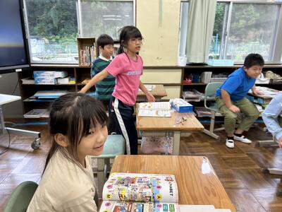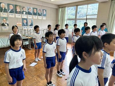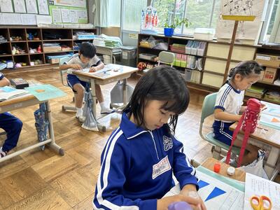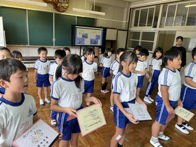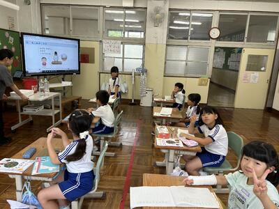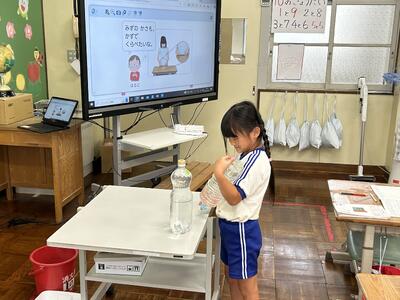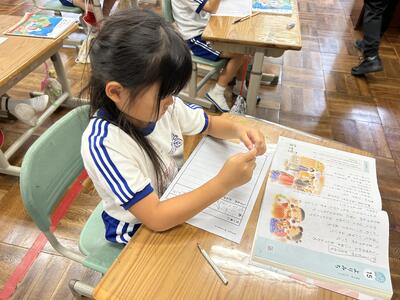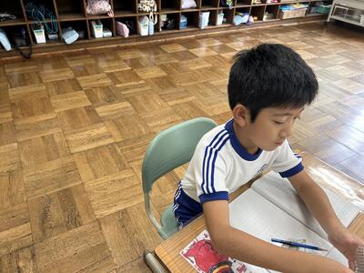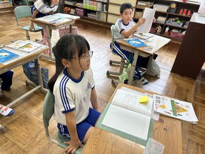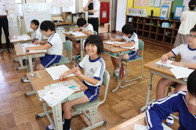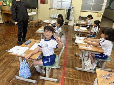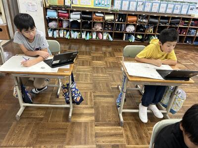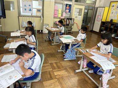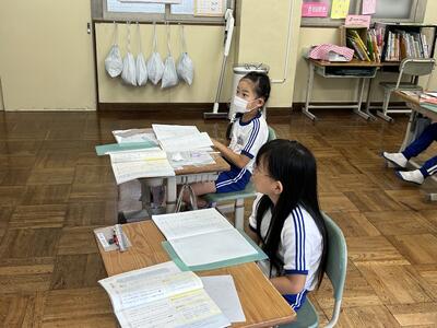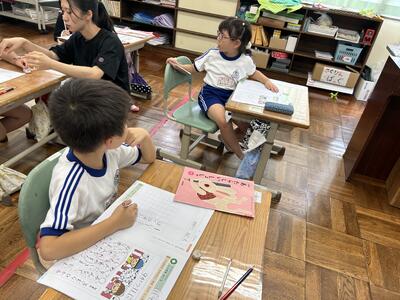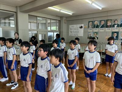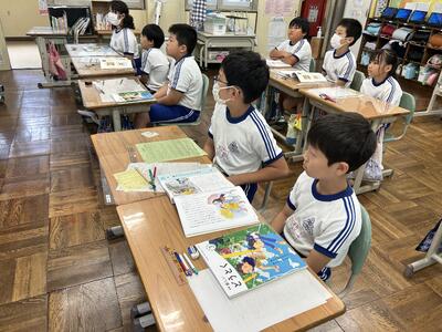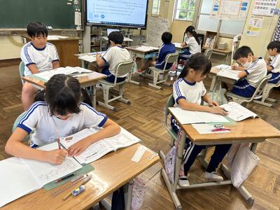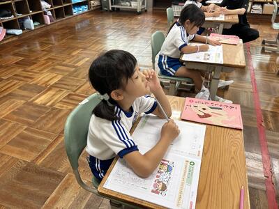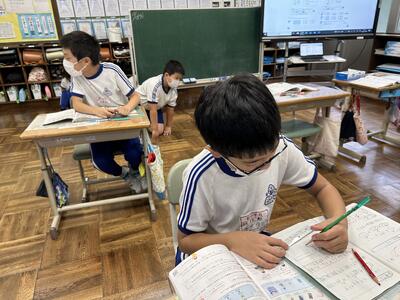 1年生も2年生もしっかりと学習ができました。1年生は国語で「くじらぐも」を学習しています。今日は雨降りで空がきれいに見えなくて残念でした。