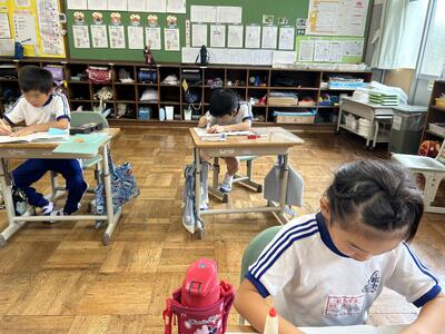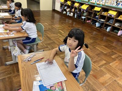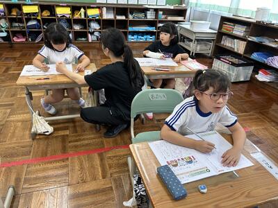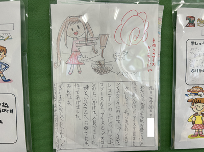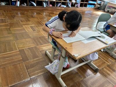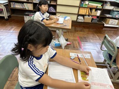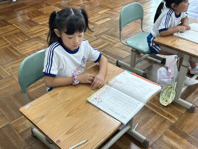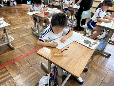 1年生は絵日記を書きました。出来事を思い出しながら、完成を目指してがんばりました。