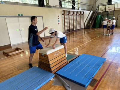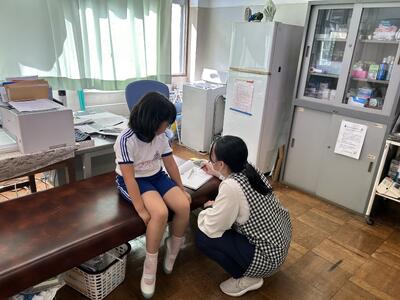 大休憩時は保健室で保健の先生と話したり、夏休みにヨガの先生から習ったポーズを校長室に見せたり、1年生は大忙しです。
