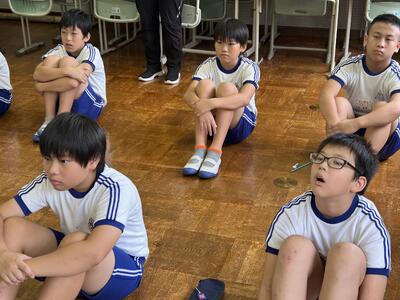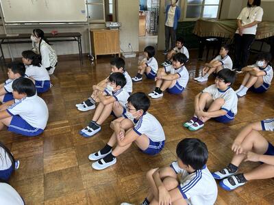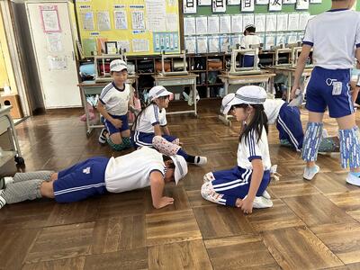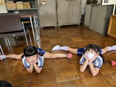 3・4年生は給食の後、自主的に筋トレをしていました。ブームのようです。