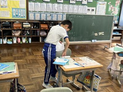 2年生は算数を頑張りました。今日も図形の学習でした。直角という言葉が新しい学習内容です。