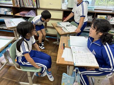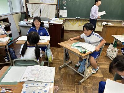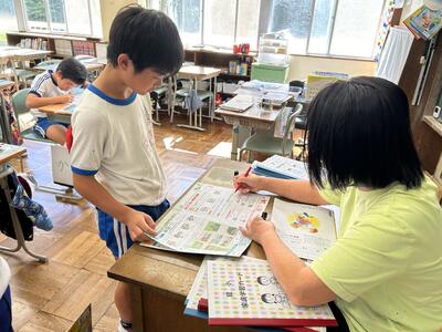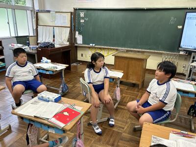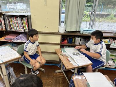 3・4年生は道徳の学習をしました。今日は学年の違う児童どうしがペアになり、意見を交流させました。