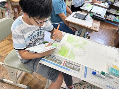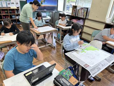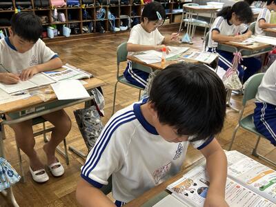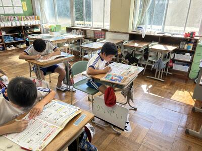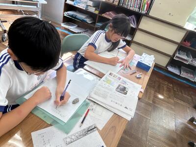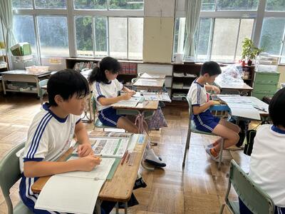 4年生は先日、出かけた見学学習のまとめを行いました。夕月かまぼこ、伝承館で聞いた語り部さんの話を上手にまとめることができました。