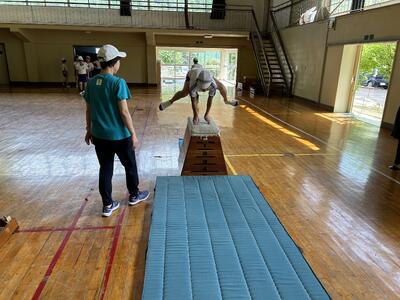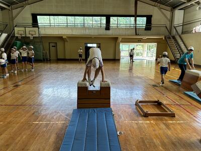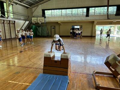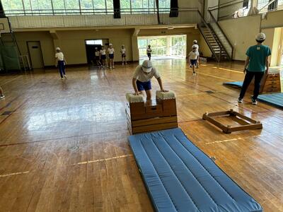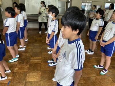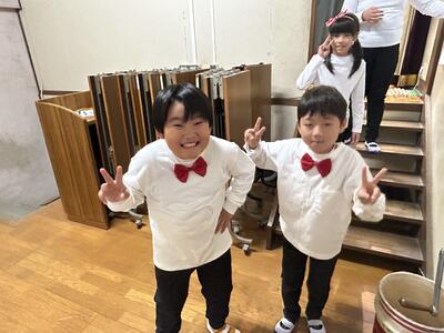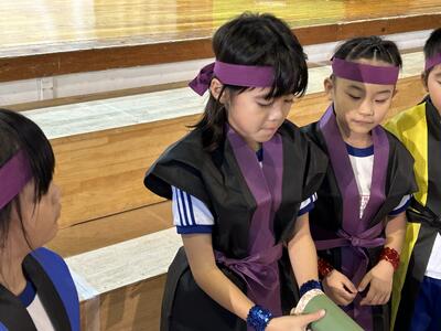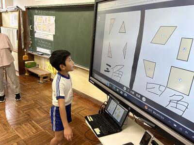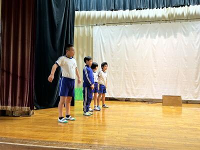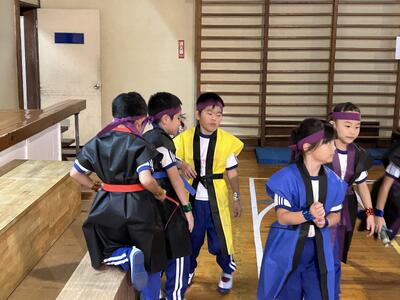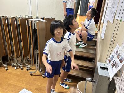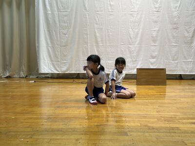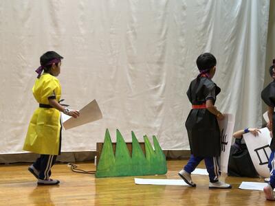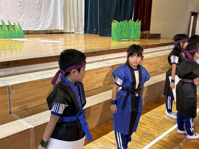 体育館に行くとかわいい忍者たち6名を発見。三角形や四角形を見つける修行中でした。詳しくは19日(土)の学習発表会でのお楽しみです。