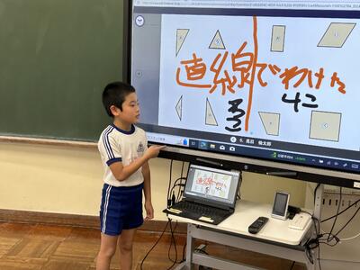 今日は2年生で授業研究を行いました。算数の授業でしたが、深く考えたり、考えたことを自分の言葉で発表することができました。またタブレット端末で図形を実際に動かすなどの工夫が見られた授業でした。午後から研究会を行い、全職員で今後、もっと子どもが分かる・楽しいよりよい授業を目指して頑張っていこうと確認しました。
