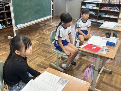 2年生は学習発表会の練習をしました。元気いっぱいの声で台本を読むことができました。本番が楽しみです。