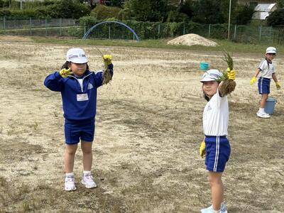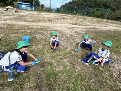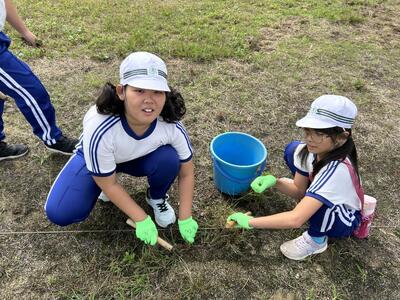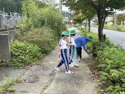 今日は全校でクリーン活動も行いました。1~4年生は校庭の除草、5・6年生は地域のゴミ拾いを行いました。ゴミ拾いをした5年生の「こんなにゴミが落ちていたんだ。今日の活動できれいになってうれしい」という感想が心に残りました。