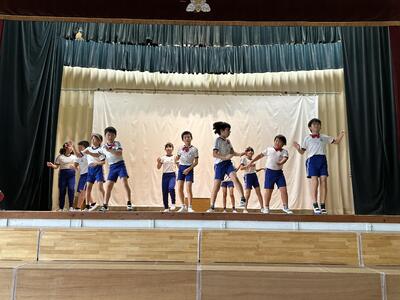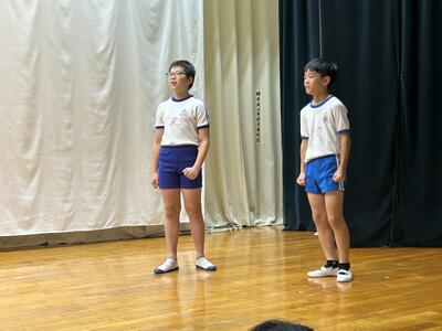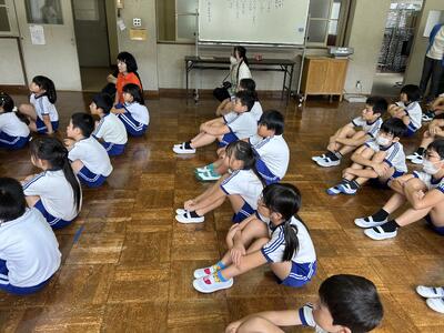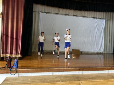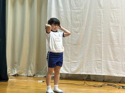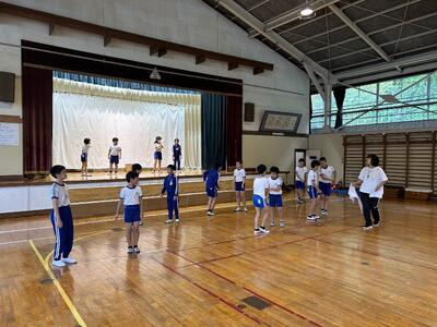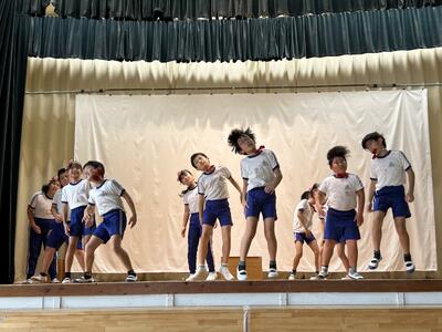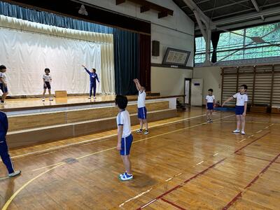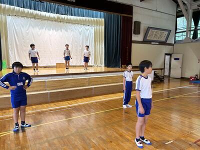 4年生は体育でダンスを頑張っています。今日はステージで練習です。