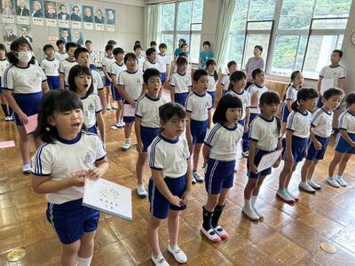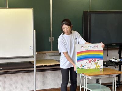 今日の全校集会は、教職員による読み聞かせが行われました。今日は2冊の本、「にじいろのしまうま」と「心はどこにある」を全校生で聞きました。感情が込められた読みに子どもたちは物語の世界に引き込まれました。身を乗り出して聞く児童や歓声をあげる児童も見られました。読書の秋です。たくさんの良書に触れましょう。読み聞かせの後、いつものように元気よく校歌を歌い、全校集会が終わりました。